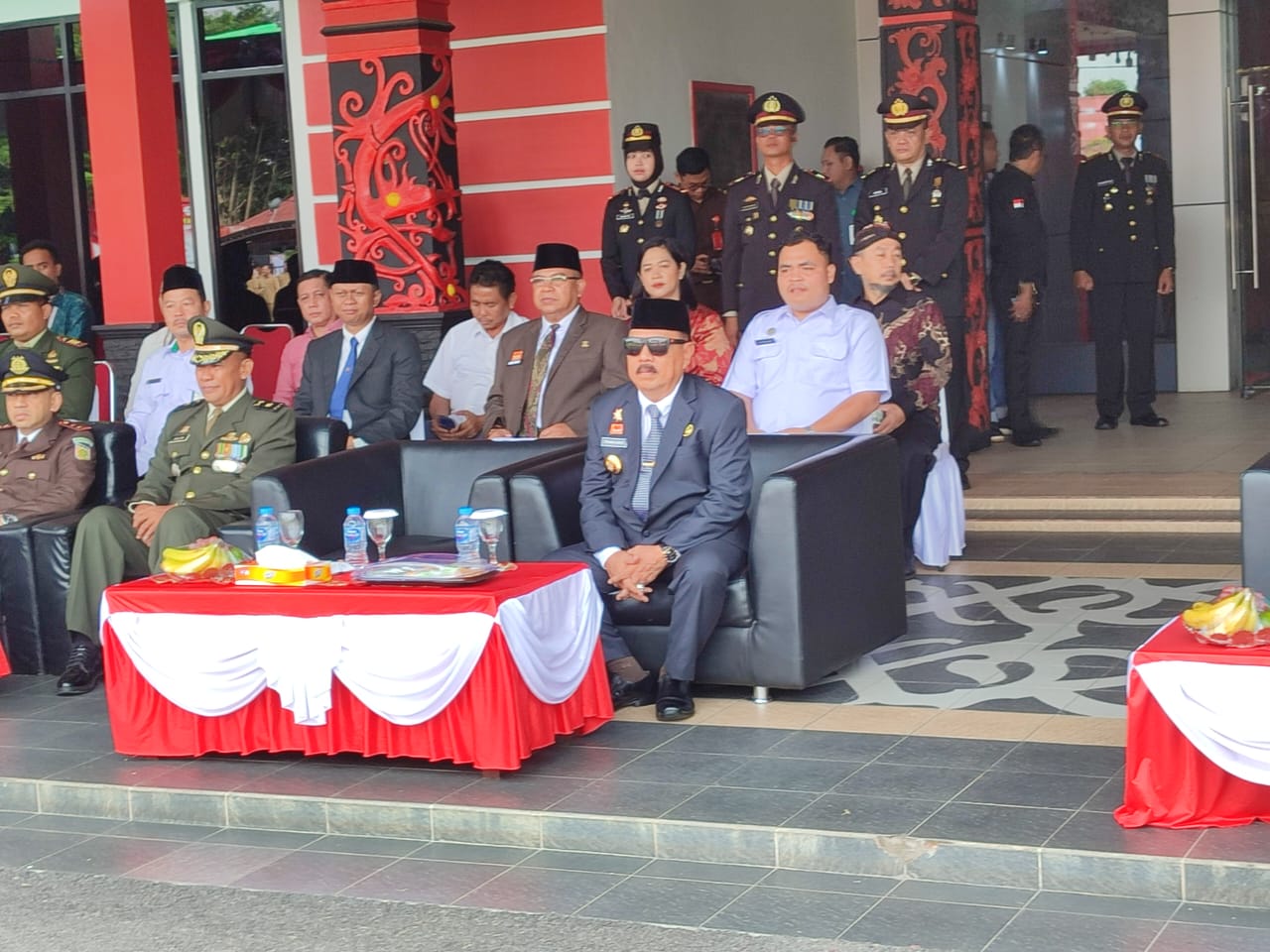 Upacara Tersebut dipimpin langsung oleh Bupati Sanggau, Drs. Yohanes Ontot, M.Si., dan diikuti oleh jajaran Forkopimda, termasuk Wakapolres Sanggau Kompol Yafet Efraim Patabang, S.H., S.I.K., M.H., para staf ahli bupati, asisten Sekretaris Daerah, serta seluruh kepala perangkat daerah di lingkungan Pemerintah Kabupaten Sanggau.