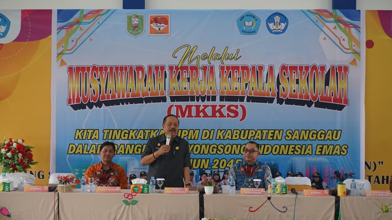 “Musyawarah kerja Kepala Sekolah (MKKS) SMP se-Kabupaten Sanggau tahun 2025 yang digelar di Aula Sekolah Menengah Dasar (SMP) 2 Sanggau,dihadiri Bupati sanggau Yohanes ontot M. S i, di kelurahan Hilir Kota pada Kamis (18/9/2025).